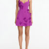 Refined and sculptural, The Eskett Mini Dress in Mulberry captures attention with a defined silhouette and couture-inspired details. Accented by a sweetheart neckline and wide straps, this fitted mini dress features bold 3D laser-cut petals artfully arranged across the bodice, bringing dimension and intrigue. Rendered in a purple with a duchess satin finish, it’s an elevated choice for cocktail occasions.