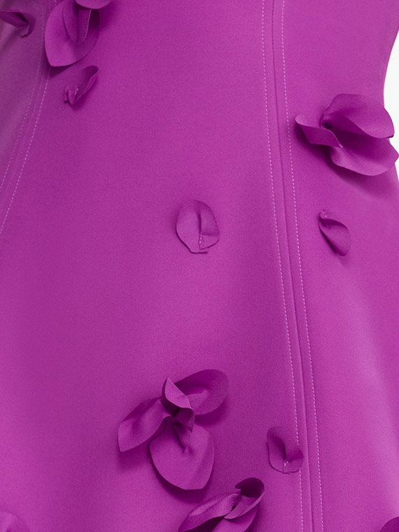 Refined and sculptural, The Eskett Mini Dress in Mulberry captures attention with a defined silhouette and couture-inspired details. Accented by a sweetheart neckline and wide straps, this fitted mini dress features bold 3D laser-cut petals artfully arranged across the bodice, bringing dimension and intrigue. Rendered in a purple with a duchess satin finish, it’s an elevated choice for cocktail occasions.