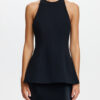 Introducing the Hawick Top in Black, a sleek silhouette designed for elevated, versatile styling. Featuring a high neckline and flared hem with side splits, this bonded top is fitted through the bodice and detailed with tonal hardware at the back. Perfect for pairing with trousers or long skirts, it offers modern minimalism.