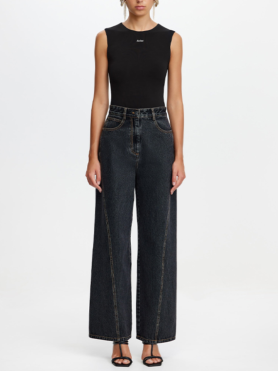 A contemporary take on everyday denim, the Poulton Jean in Black is a high-waisted, wide-leg silhouette designed to elevate your wardrobe essentials. Contrast stitching and vertical front seam detailing elongate the leg, while a front fly zip closure ensures ease of wear.