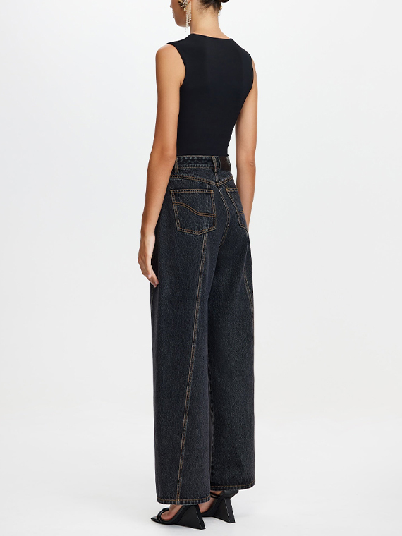 A contemporary take on everyday denim, the Poulton Jean in Black is a high-waisted, wide-leg silhouette designed to elevate your wardrobe essentials. Contrast stitching and vertical front seam detailing elongate the leg, while a front fly zip closure ensures ease of wear.