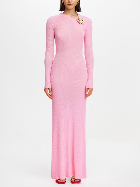 A refined take on casual dressing, the Rowthorn Maxi Dress in Pink is crafted from a lightweight knit that softly contours the frame. An asymmetric neckline and sculptural metal hardware elevate the silhouette, offering a modern edge. Effortless to wear, it can be styled with heels for an elevated look or layered under outerwear through cooler months.