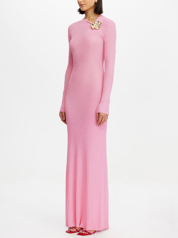 A refined take on casual dressing, the Rowthorn Maxi Dress in Pink is crafted from a lightweight knit that softly contours the frame. An asymmetric neckline and sculptural metal hardware elevate the silhouette, offering a modern edge. Effortless to wear, it can be styled with heels for an elevated look or layered under outerwear through cooler months.