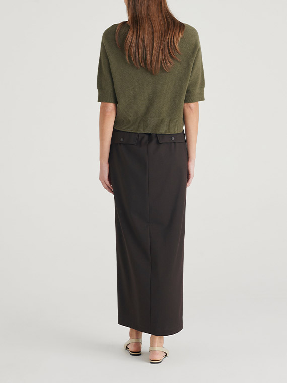 Cropped, short-sleeved sweater designed for a modern and functional look. The cropped cut and mid-length sleeves ensure comfort and style, perfect for versatile and contemporary outfits.