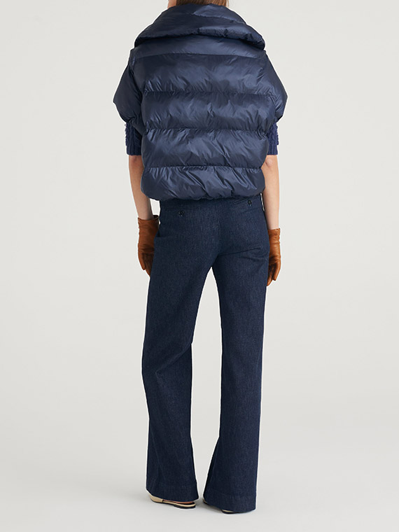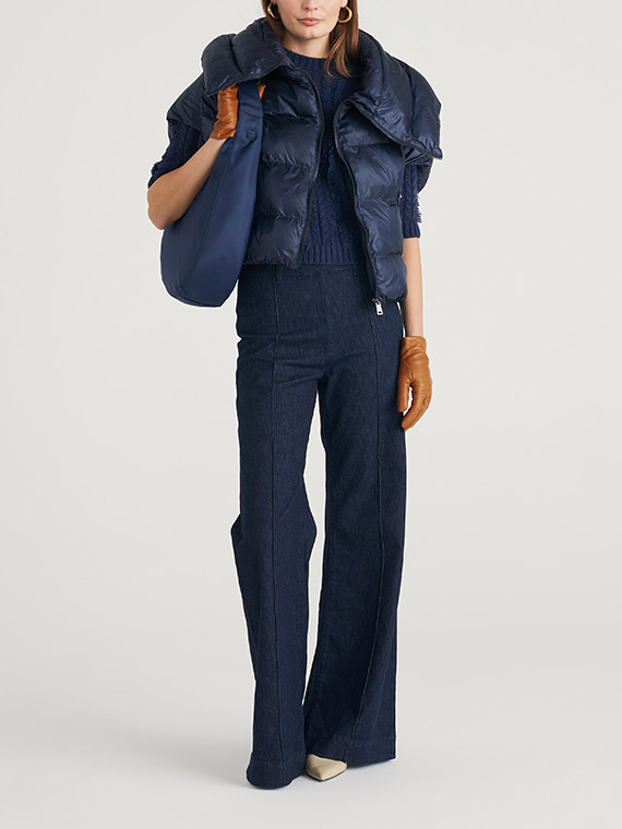 These wide-leg denim trousers combine comfort and style thanks to their loose fit and the knit detail, which adds a distinctive and refined touch. Ideal for those seeking a versatile and contemporary piece, perfect for creating casual yet refined looks.