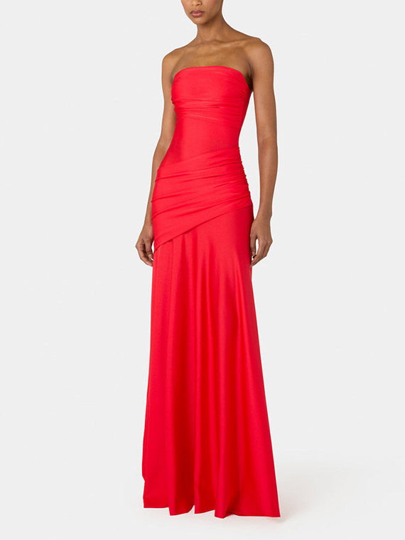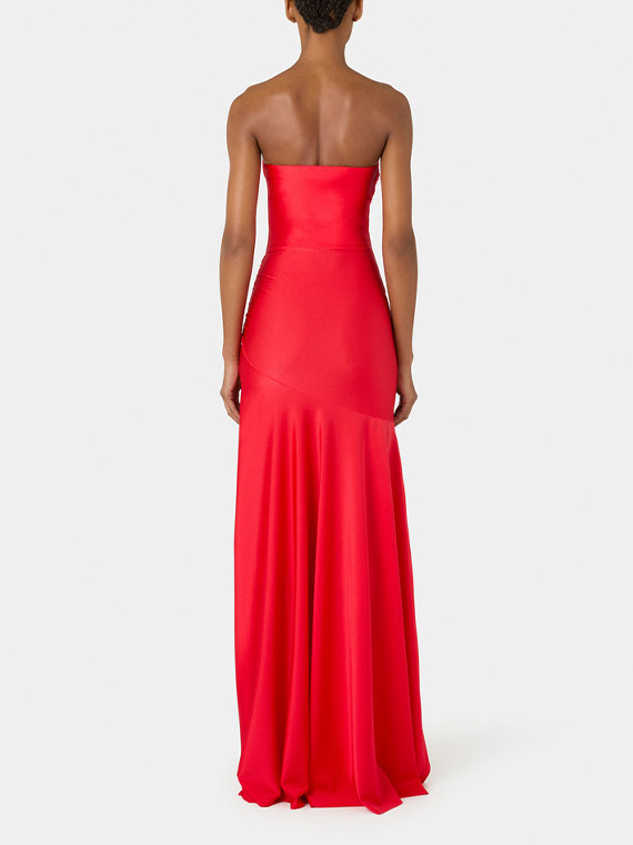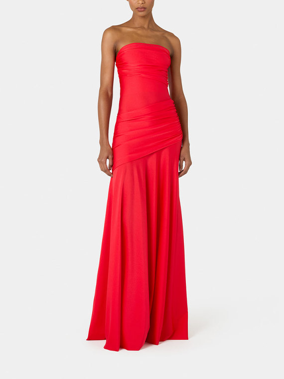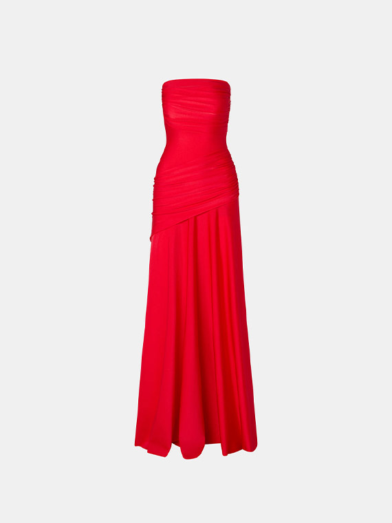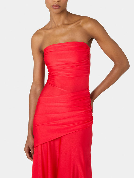 The Dilara dress in Java jersey is an essential, sophisticated piece: strapless, sleeveless, and fluid in shape. The soft skirt adds movement, while the fitted silhouette enhances the figure, creating a modern, minimalist, and contemporary glamour.