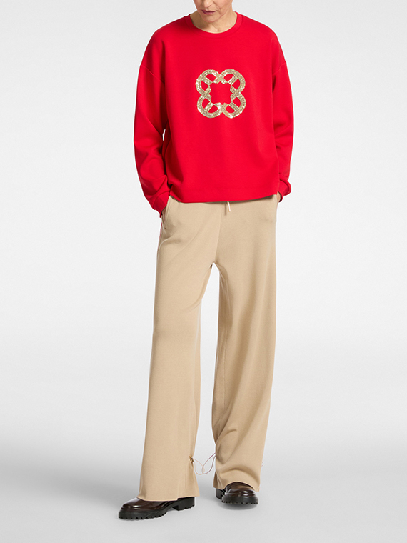 The Monogram embroidery is the protagonist of the look with this scuba sweatshirt. Ribbed edges around the neckline and cuffs. A key piece in the Athleisure project, where sporty chic versatility meets timeless elegance.
