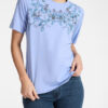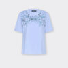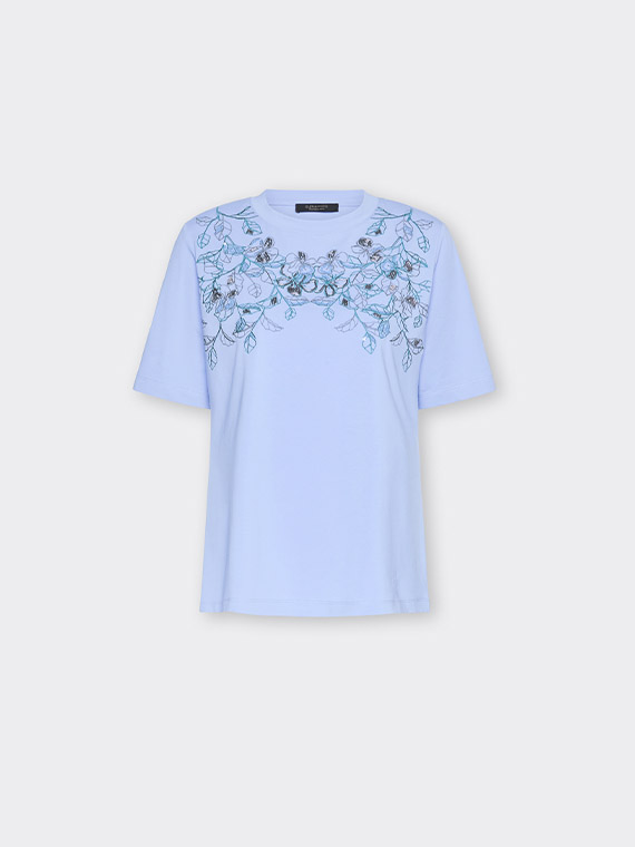 Cotton jersey T-shirt with precious floral embroidery on the front in thread and crystals. Ideal for a contemporary style.