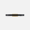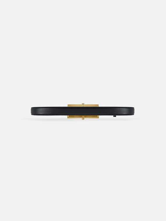 High waist belt made of leather-effect synthetic material. It is embellished with a buckle with prong with golden metal logo.