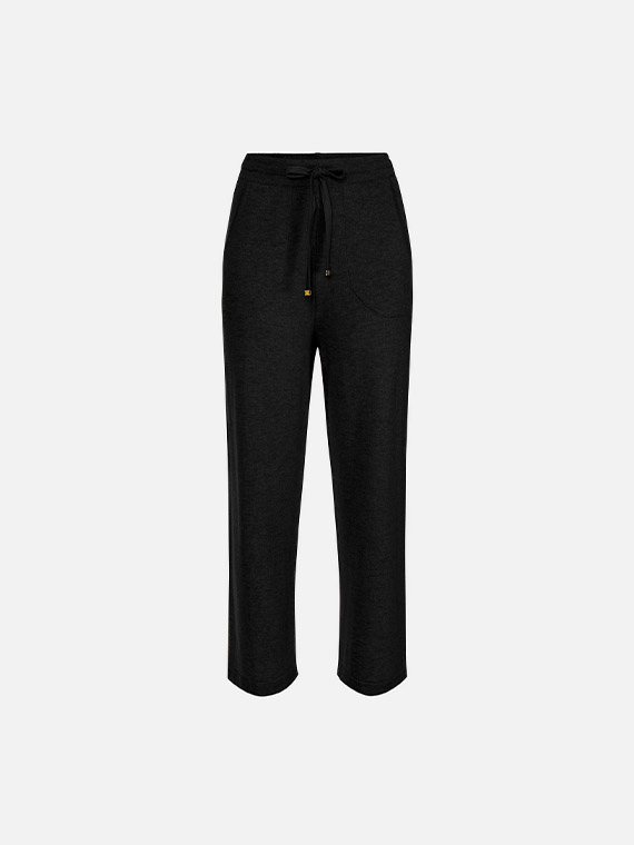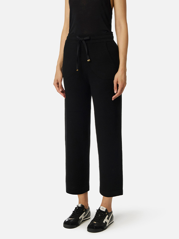 Cashmere blend trousers with regular fit. With slant pockets and ankle length, they are characterised by a soft texture that caresses the skin. Golden metal tips embellish the drawstring at the waist.