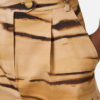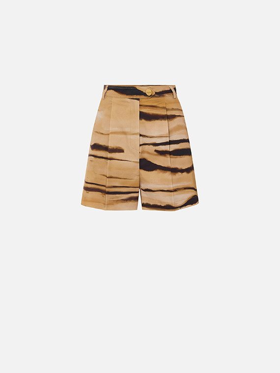 Drill shorts. Safari style with applied flaps on the back, they have stitching highlighted by contrasting topstitching. The star feature is the tiger all-over print, inspired by natural colours and patterns. Regular fit.