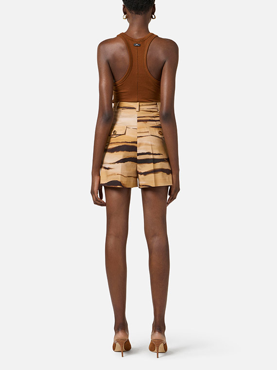 ELISABETTA FRANCHI Drill Shorts With Tiger Print