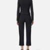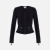 Jacket in double layer crêpe fabric with slim fit. With a crew neck and long sleeves, it is defined by corsetry-inspired cuts that give it a geometric silhouette. Decorative elements such as zips and matching welts enhance the waist.
