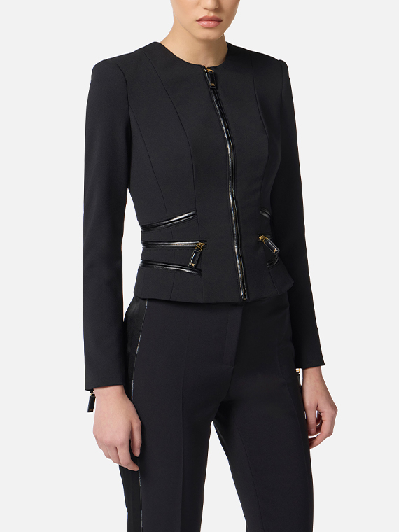ELISABETTA FRANCHI Jacket in Double-layer Crêpe Fabric With Zip Details