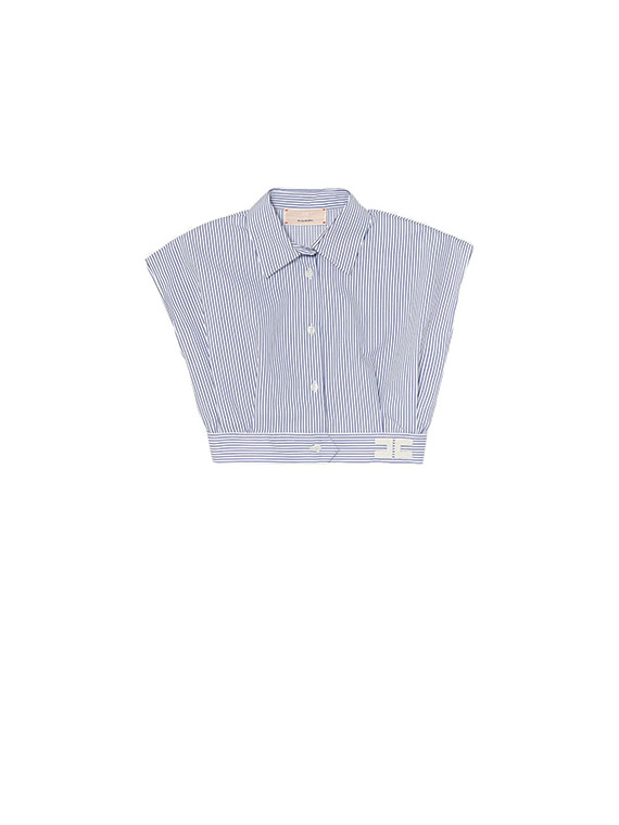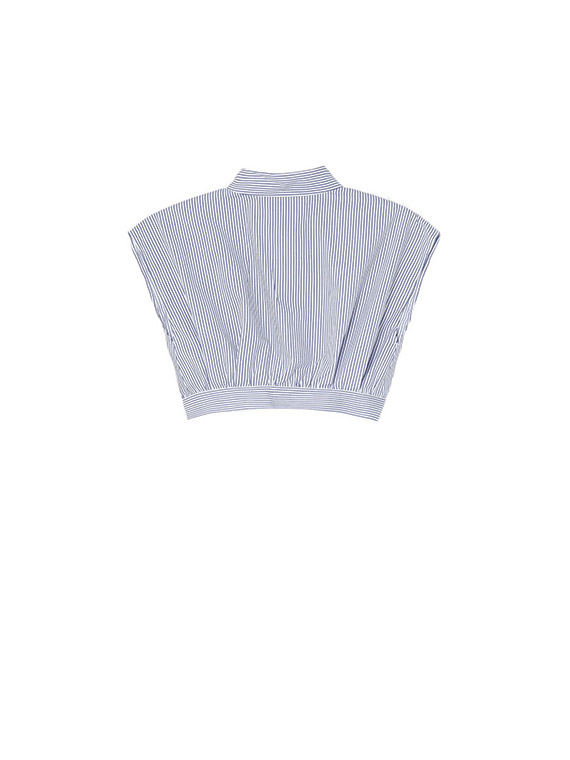Striped pattern. Button fastening. Embroidered logo. Cropped fit.