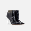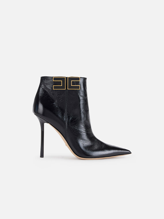 Leather boots with tapered toe and stiletto heels. They are characterised by the side logo with gold-finished edges for a bright contrast.