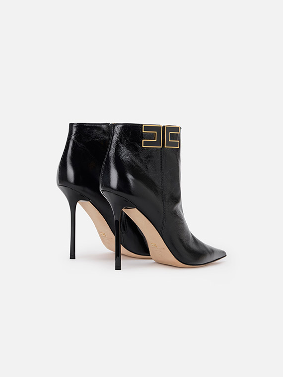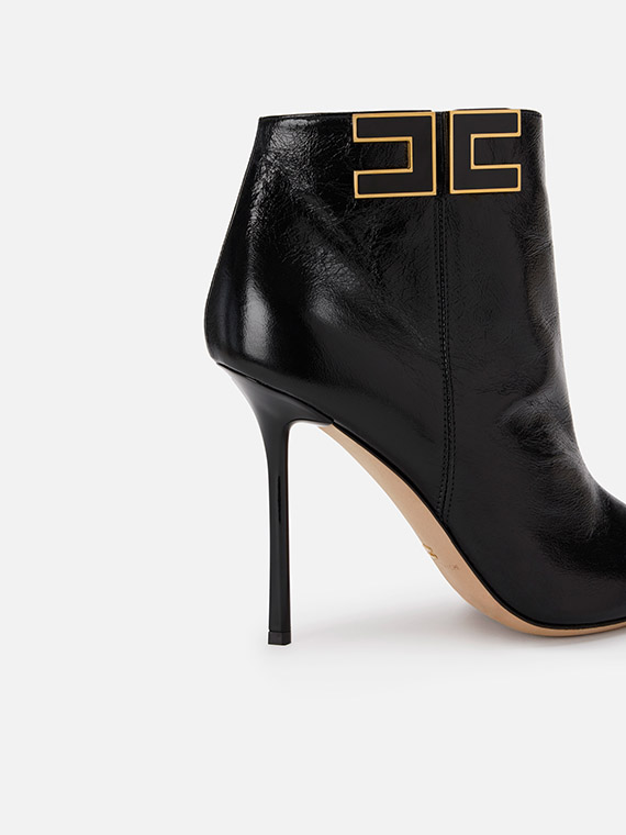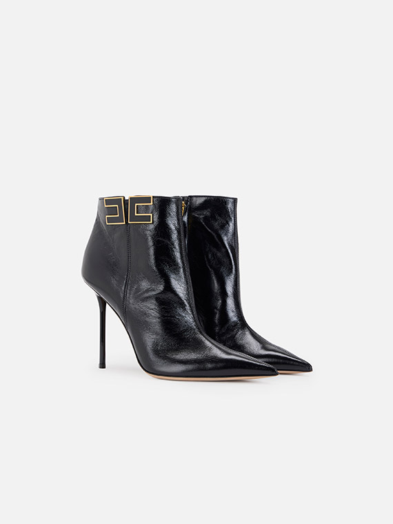 Leather boots with tapered toe and stiletto heels. They are characterised by the side logo with gold-finished edges for a bright contrast.