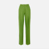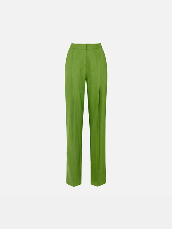 Trousers in a linen blend with a flowing, shiny texture. They feature an iron crease in the centre, slant pockets and flaps applied on the back, embellished with golden metal buttons with the logo. Regular fit.