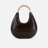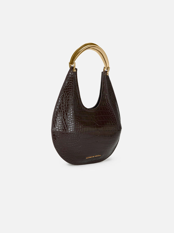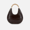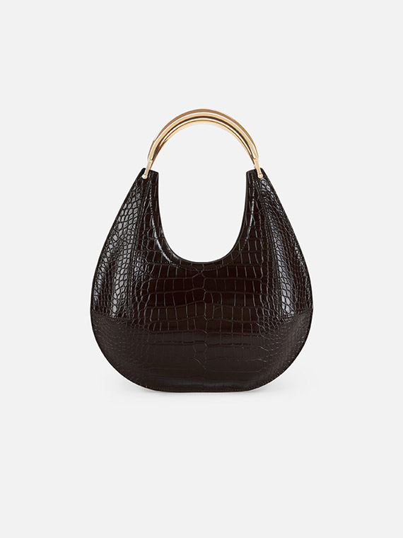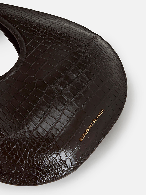Medium hobo bag in leather-effect synthetic material. The crocodile print texture lends character to the accessory, embellished with a golden metal jewel handle. Logo at the bottom. Golden metal handle