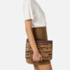 Pouch made in raffia-effect fabric. The star feature is the tiger all-over print, inspired by natural shapes and colours. Zip closure. Size: 21 X 30 X 1 cm