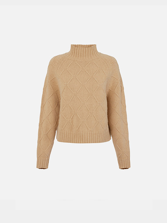 Boxy knit pullover with an oversized fit. The garment has a high collar, long sleeves and ribbed hem. It stands out for the jacquard diamond pattern, giving three-dimensionality and compactness to the texture. The label with logo on the back of the neck completes the garment.