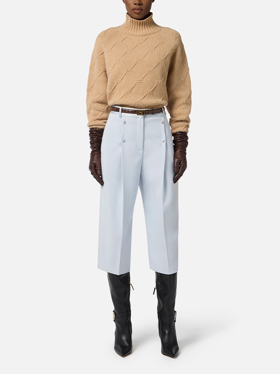 ELISABETTA FRANCHI Pullover in Knit Fabric With Jacquard Diamonds