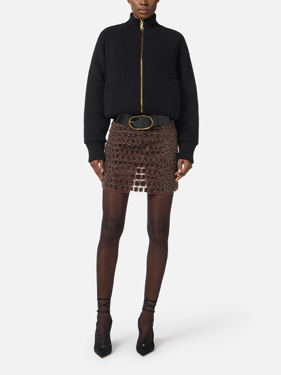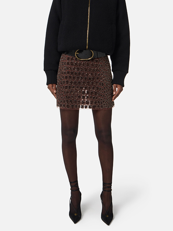 ELISABETTA FRANCHI Skirt in Tulle Fabric With Crocodile Embroideries