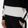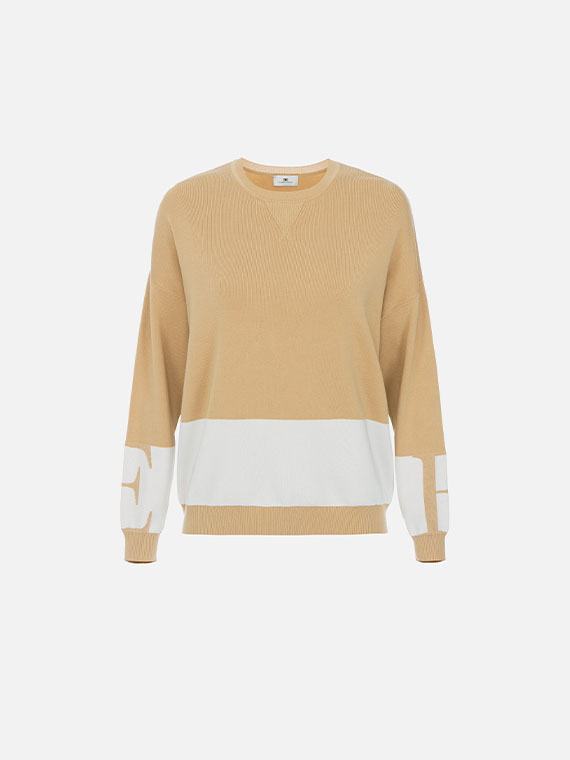 Top in viscose fabric with regular fit. With a wide crew neck, it is characterised by shiny viscose inlaid logos on the sleeves and back, creating bold colour-blocking effects.