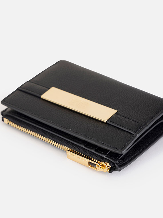 Wallet made in leather-effect synthetic material. The accessory is embellished with a plaque with logo and zip closure.