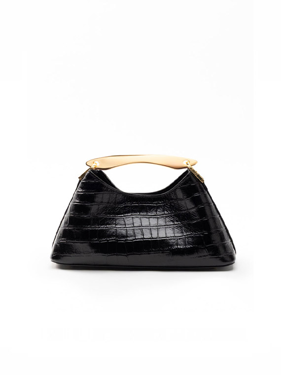 ELLEME PARIS Mini Boomerang Croco Embossed Leather Black