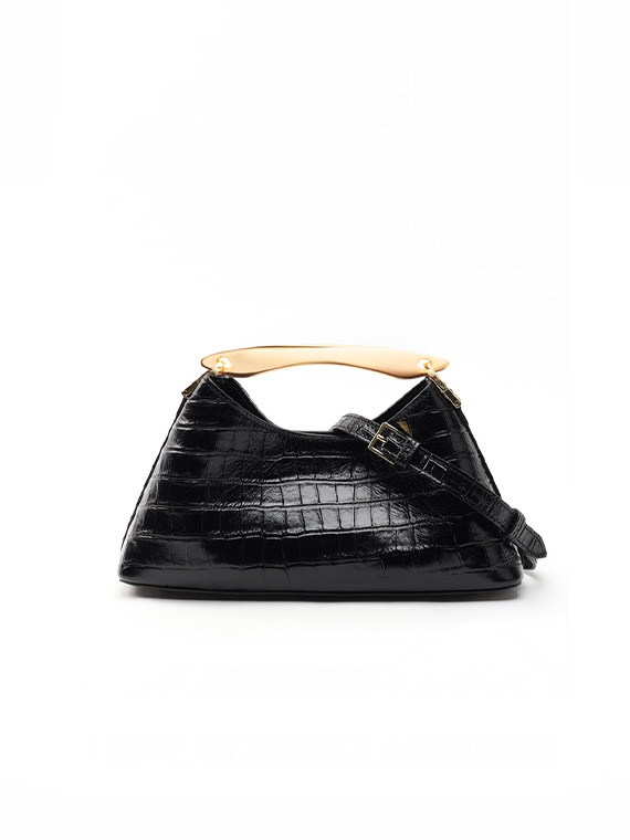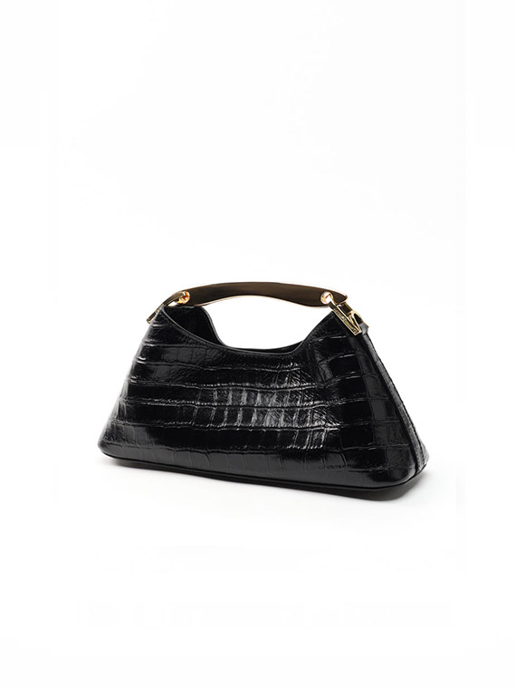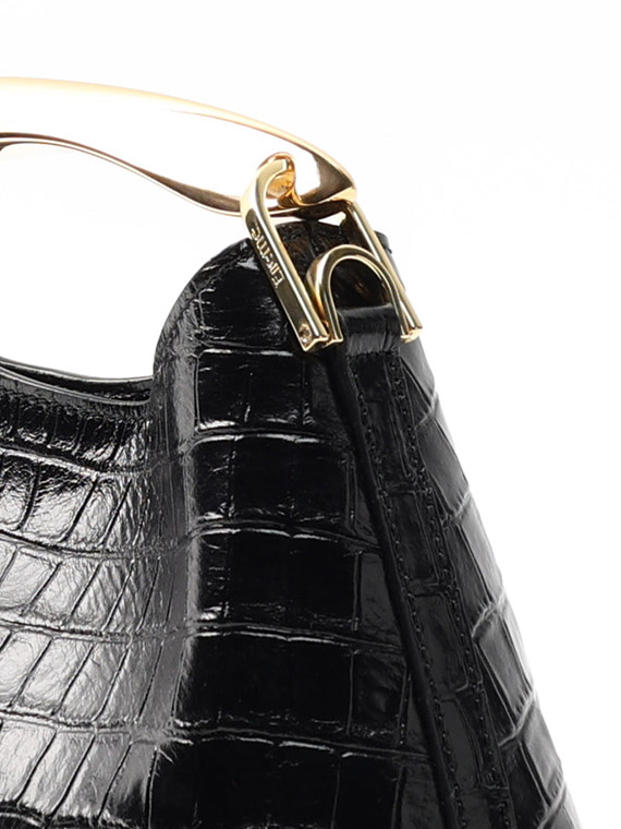 ELLEME PARIS Mini Boomerang Croco Embossed Leather Black