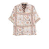 Printed. Short sleeves. Front button fastening. Patterned design.