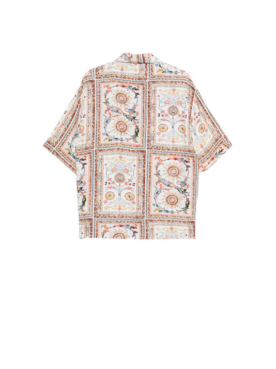 Printed. Short sleeves. Front button fastening. Patterned design.