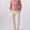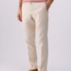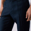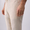 Pure linen trousers. Stretch waistband. Handy pockets. Slim fit. Turn-up hems.