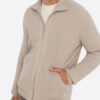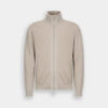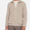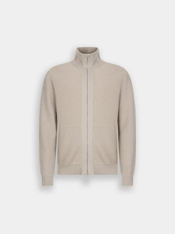 Ribbed knit. High neck. Long sleeves. Pouch pockets. Metal lj logo on the hem. Double tab zip closure.