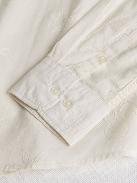 Ultra-lightweight cotton Gardenia shirt with refined all-over summer-inspired embroidery, designed for casual looks with a sophisticated touch. The pearl button closure and regular fit ensure comfort and freedom of movement, making it versatile for any occasion. The tone-on-tone Rider MCS embroidery on the heart adds a distinctive detail that completes the design, for outfits full of style and authenticity.