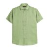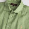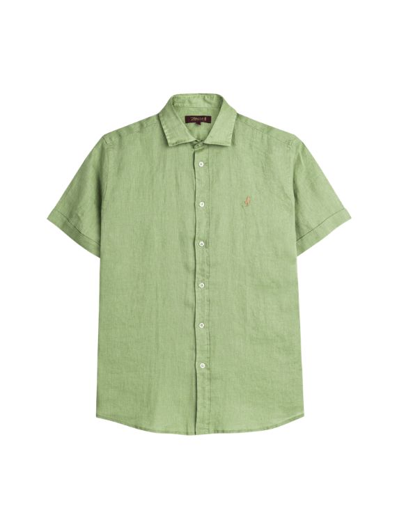Men’s Light Green short-sleeve linen shirt made from pure piece-dyed linen, naturally cool and breathable. Ideal as a men’s short-sleeve shirt for the summer season, it combines lightness and comfort in a clean, casual style. The French collar and custom pearl buttons enhance the simple solid-color design, while the Rider MCS embroidery on the chest signs an essential and authentic model.