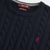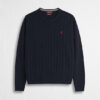 Men’s crew neck sweater in 7 gauge with cable knit, made of soft lambswool yarn. Washed with enzymes to enhance the softness of the fabric, it is finished with a Rider embroidery on the heart point and a contrasting detail inside the collar. A warm and authentic piece, ideal for facing winter with a touch of distinctive style.