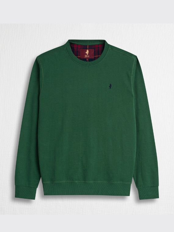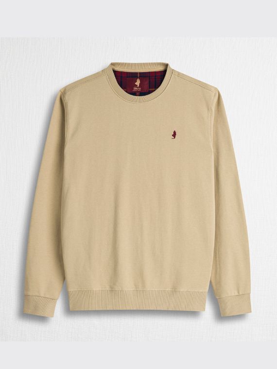Men’s crew neck sweatshirt in solid color made of 100% brushed cotton, treated with enzymatic washing for a soft and comfortable feel. Internal check detail at the neck and Rider embroidery on the heart point complete a casual, understated, and refined style. An essential piece for an authentic and relaxed everyday wardrobe.
