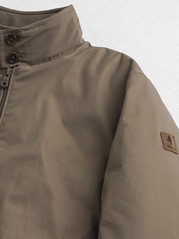 Men’s Harrington jacket in padded softshell, with a quilted interior for added comfort. Stand-up collar with button closure, hem, cuffs, and inner collar in ribbed fabric for an optimal fit. Equipped with convenient welt pockets with flap and button, it is enhanced by the detail of the leather patch with MCS logo on the sleeve. Soft and regular fit.