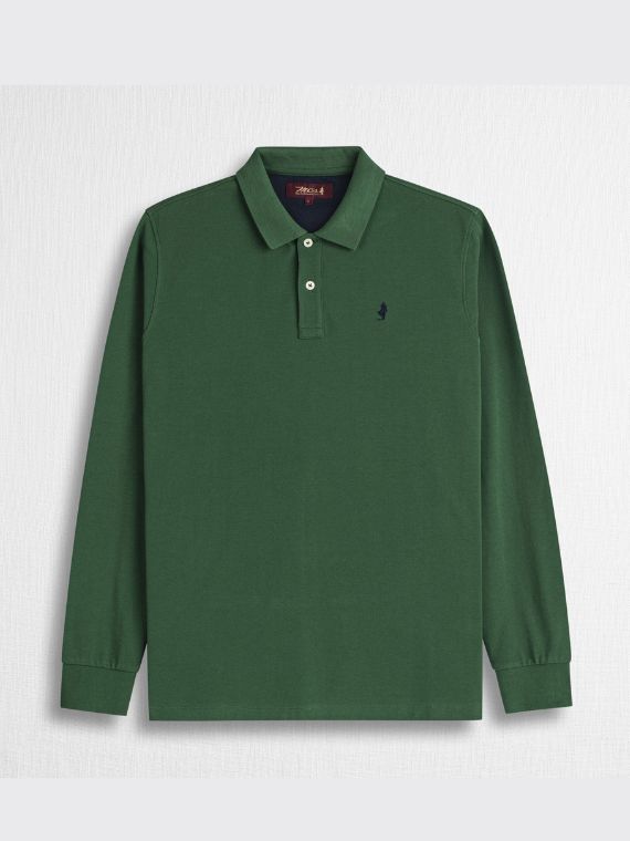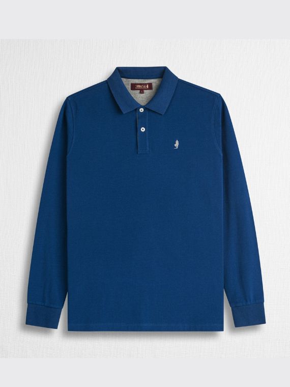 Men’s long-sleeve cotton polo made of brushed piqué for a soft and compact feel. The collar and internal buttoning in contrasting colors compared to the solid color background give a distinctive character to the look. Finished with pearly buttons and Rider embroidery on the heart point for an authentic touch.