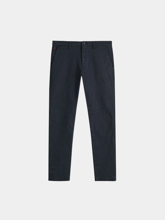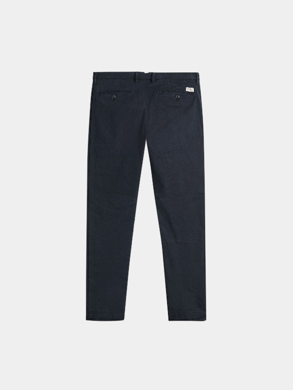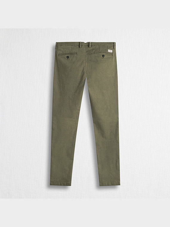 Men’s chino pants in stretch cotton gabardine, dyed with pigment for an “Antique” effect for a lived-in look and unique shades. The cotton gabardine fabric gives the pants durability and a fine hand. Welt back pockets, embroidered Rider logo on the right side, woven label on the back, and MCS buttons complete this piece with clean and timeless lines.