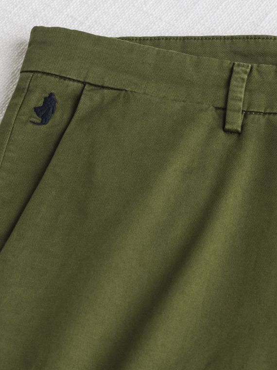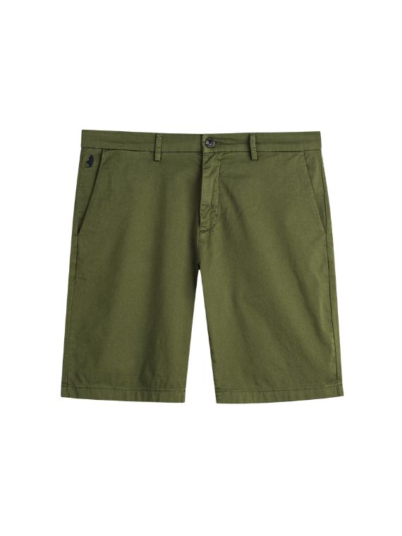 Short summer chino pants in stretch gabardine, ideal for a casual and refined look. The stretch cotton gabardine, with its characteristic diagonal weave, ensures comfort and durability, while the garment dye gives the fabric color depth and an authentic appearance. The Rider MCS embroidery on the right pocket completes the design, signing these practical and versatile men’s bermuda shorts.